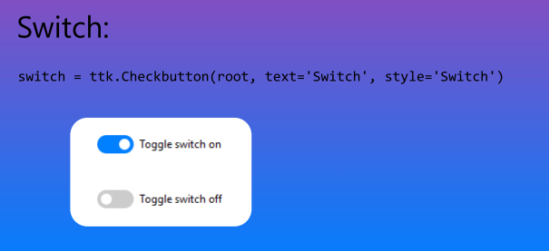 Nice GUI graphic for tkinter with ttk and azure theme from this guy ...