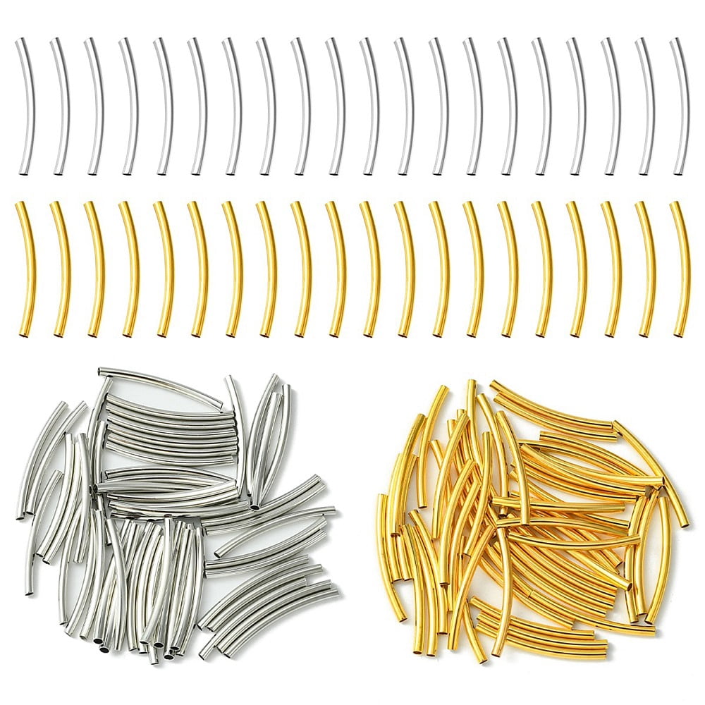 100Pcs 2 Colors Brass Tube Beads Curved Nickel Free Platinum Golden ...