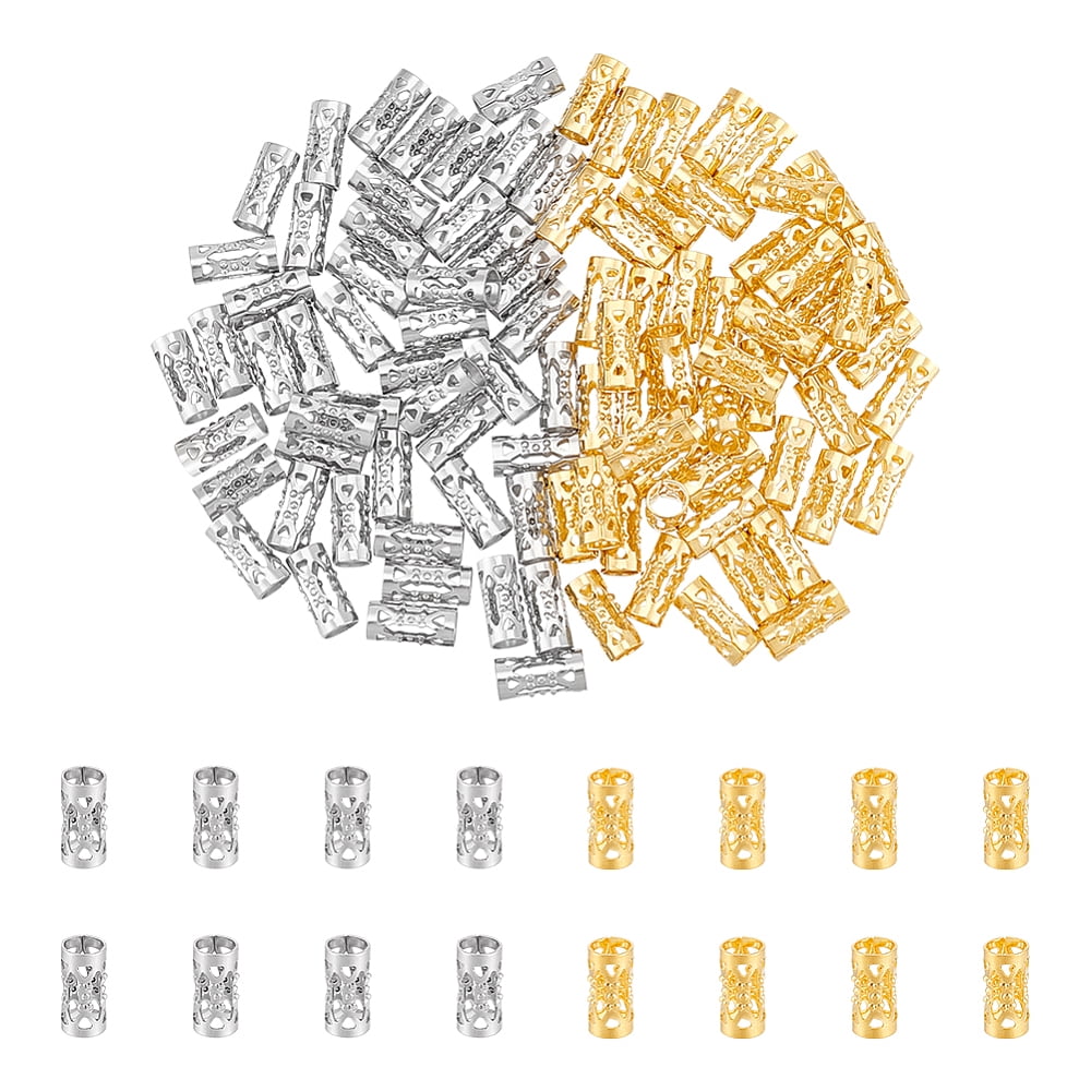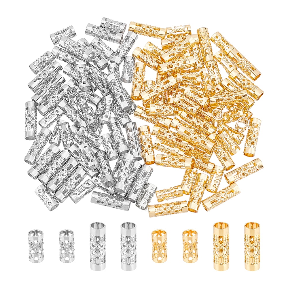 100Pcs 2 Colors Stainless Steel Hollow Tube Beads Column Mixed Color ...