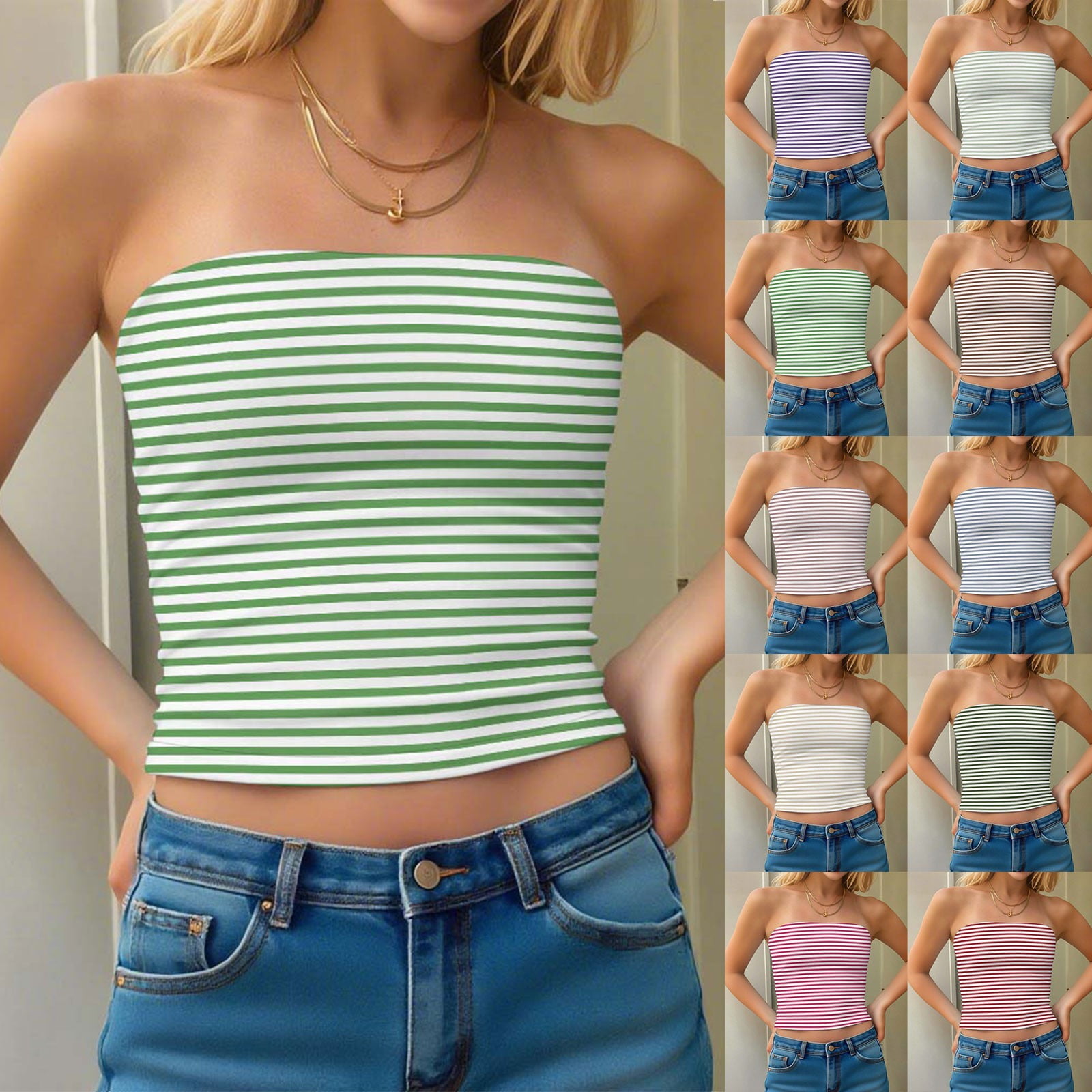 Avtoify Women's Solid Color Style Double-Layer Striped Tube Top ...