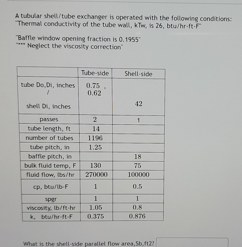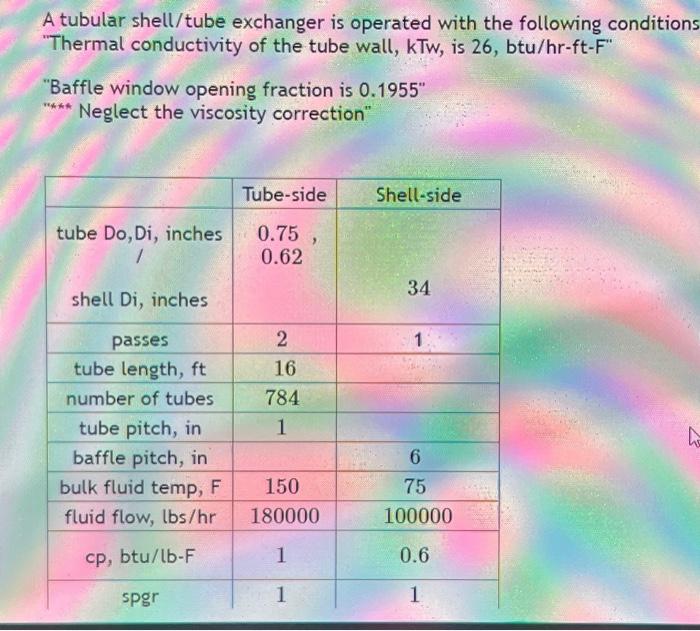 Solved A tubular shell/tube exchanger is operated with the | Chegg.com