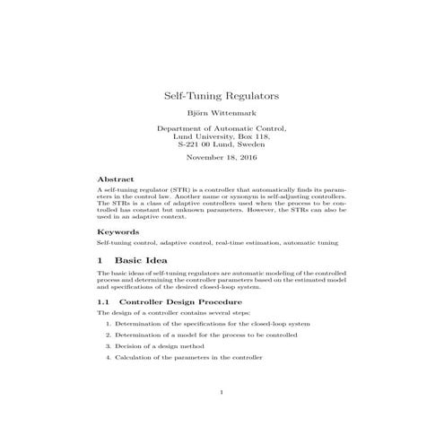 Self-Tuning Regulators education guide for engineering students | PDF