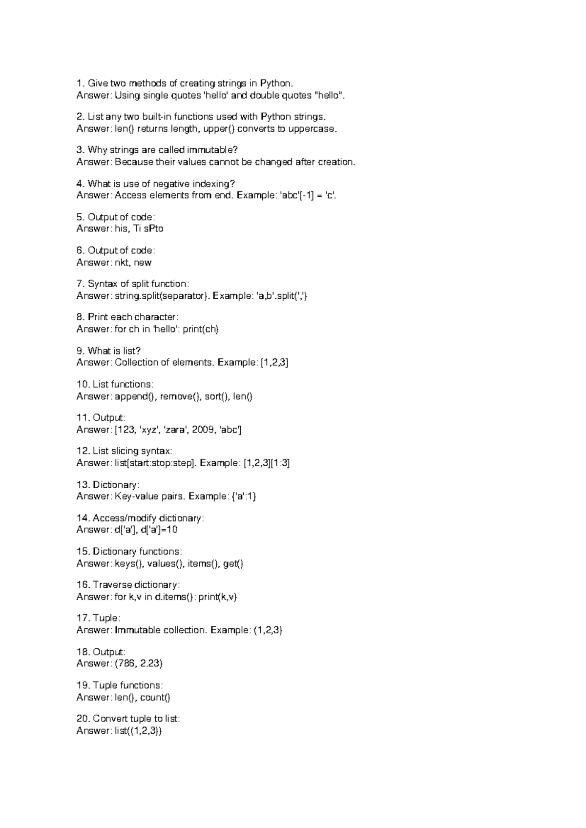 Python Unit 2 Two Marks Notes: String, List, Dict, and Tuple - Studocu