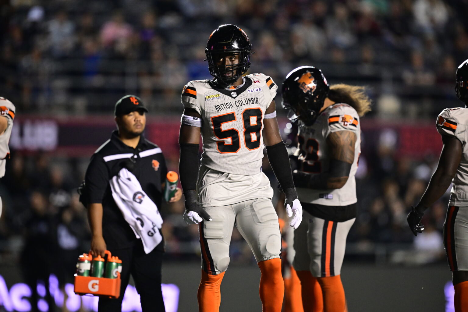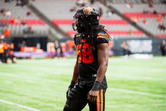 Kemoko Turay of the BC Lions on the sideline before the game between ...