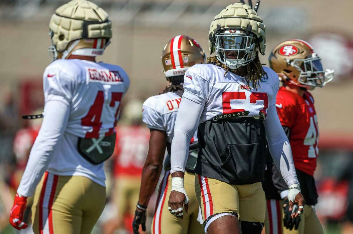 San Francisco 49ers defensive lineman Kemoko Turay (53) takes part in ...