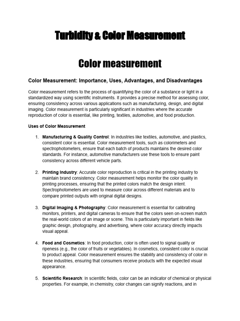 Turbidity & Color Measurement | PDF | Water Quality | Particulates