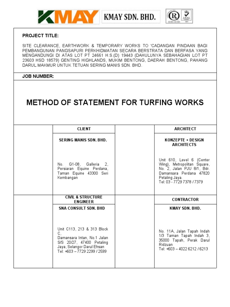 Method Statement for Turfing Works | PDF | Sod | Personal Protective ...