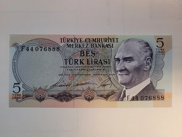 1968 TURKEY 5 Lira President Mustafa Kemal Atatürk Bank Note $15.00 ...