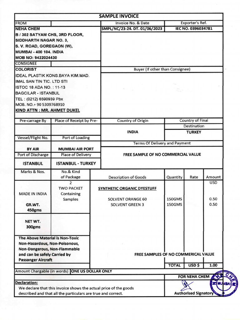 Turkey Sample Invoice | PDF