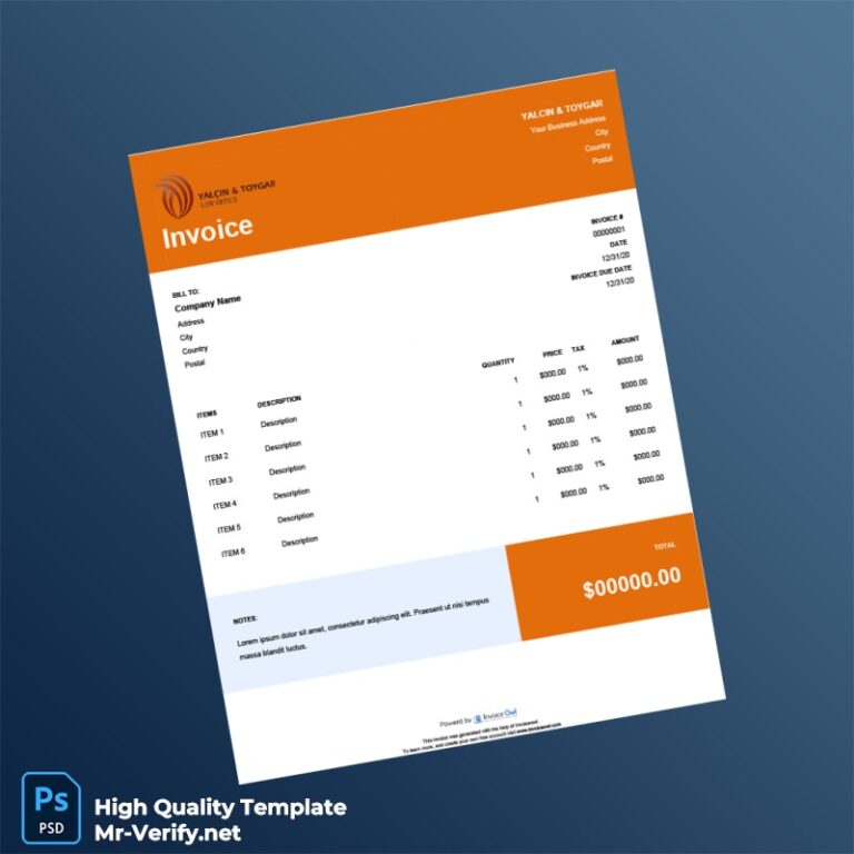Turkey Yalcin Toygar Invoice Template In Word And PDF Formats