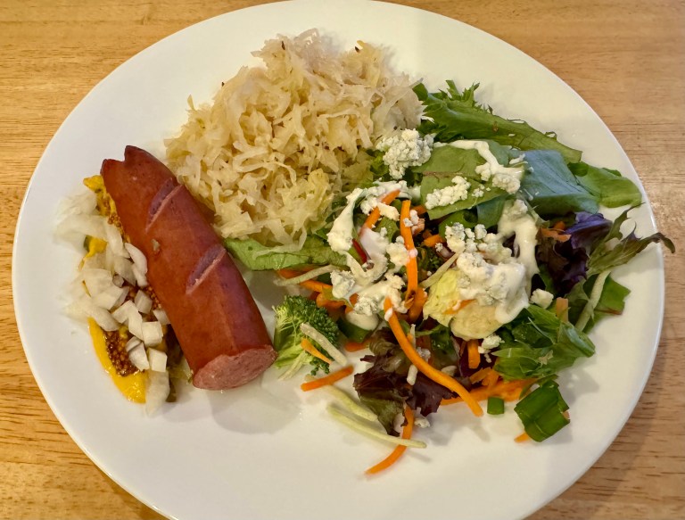 Turkey sausage, sauerkraut, salad. 4/23/26 | Omnivore