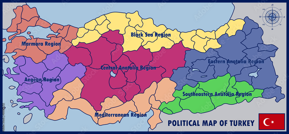 Political Map of Turkey with Flag Stock Vector | Adobe Stock