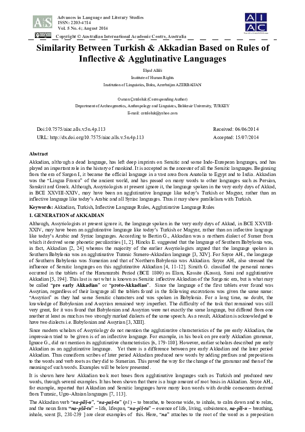 (PDF) Similarity Between Turkish & Akkadian Based on Rules of ...