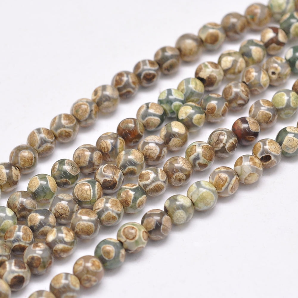 6 Mm Natural Tibetan Turtle Back Pattern Round Dzi Agate Beads, Dyed ...