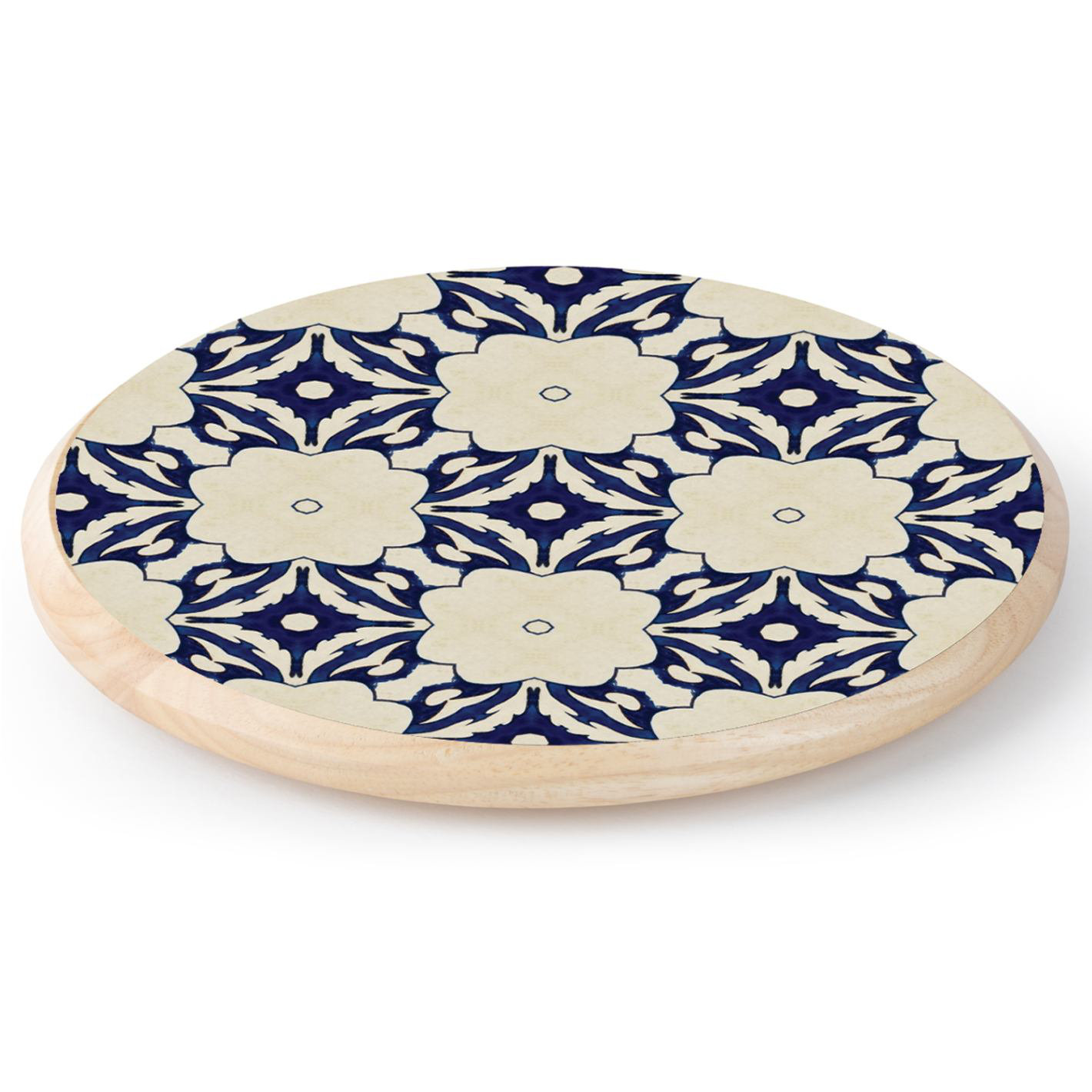 CounterArt Blue Floral Tile Pattern Wood Lazy Susan Turntable | Wayfair