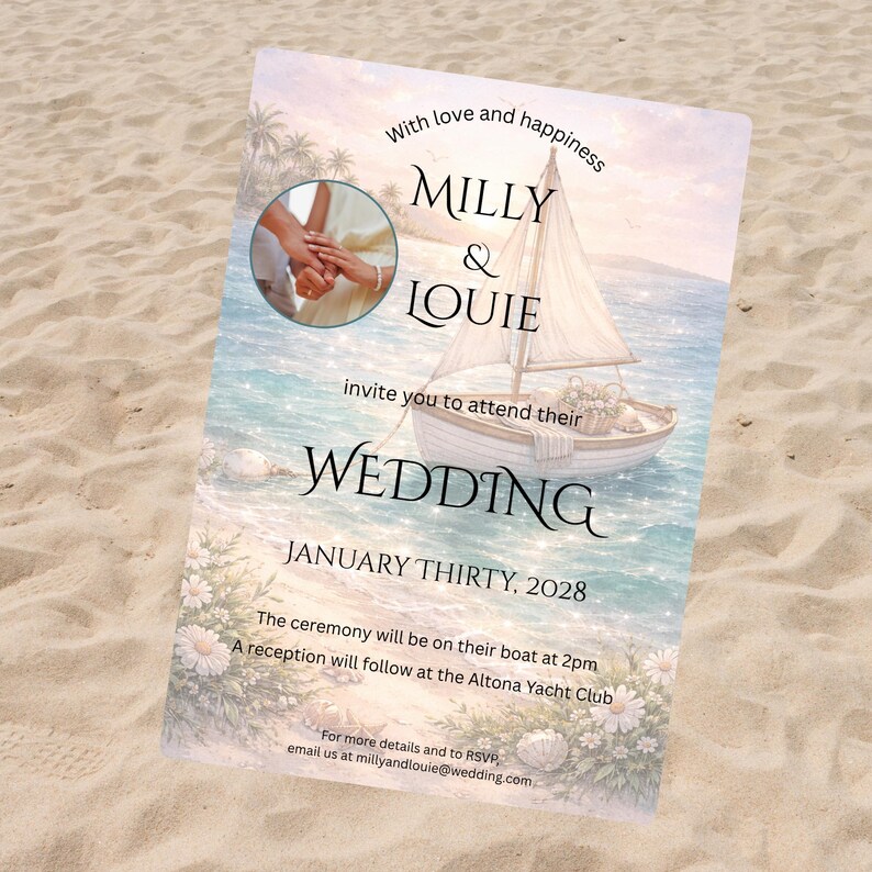 Sailing Wedding Invitation, Coastal Beach, Nautical, Ocean Theme ...