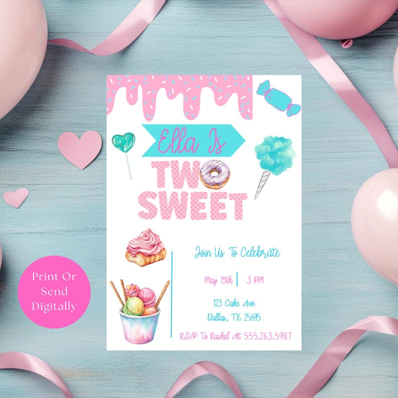 Two Sweet Birthday Invitation, Two Sweet Donut Birthday, 2nd Birthday ...