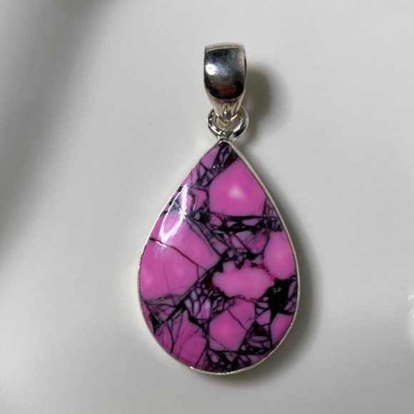 Jewelry | Pink Dahlia Turquoise Teardrop Pendant Sterling Silver Boho ...