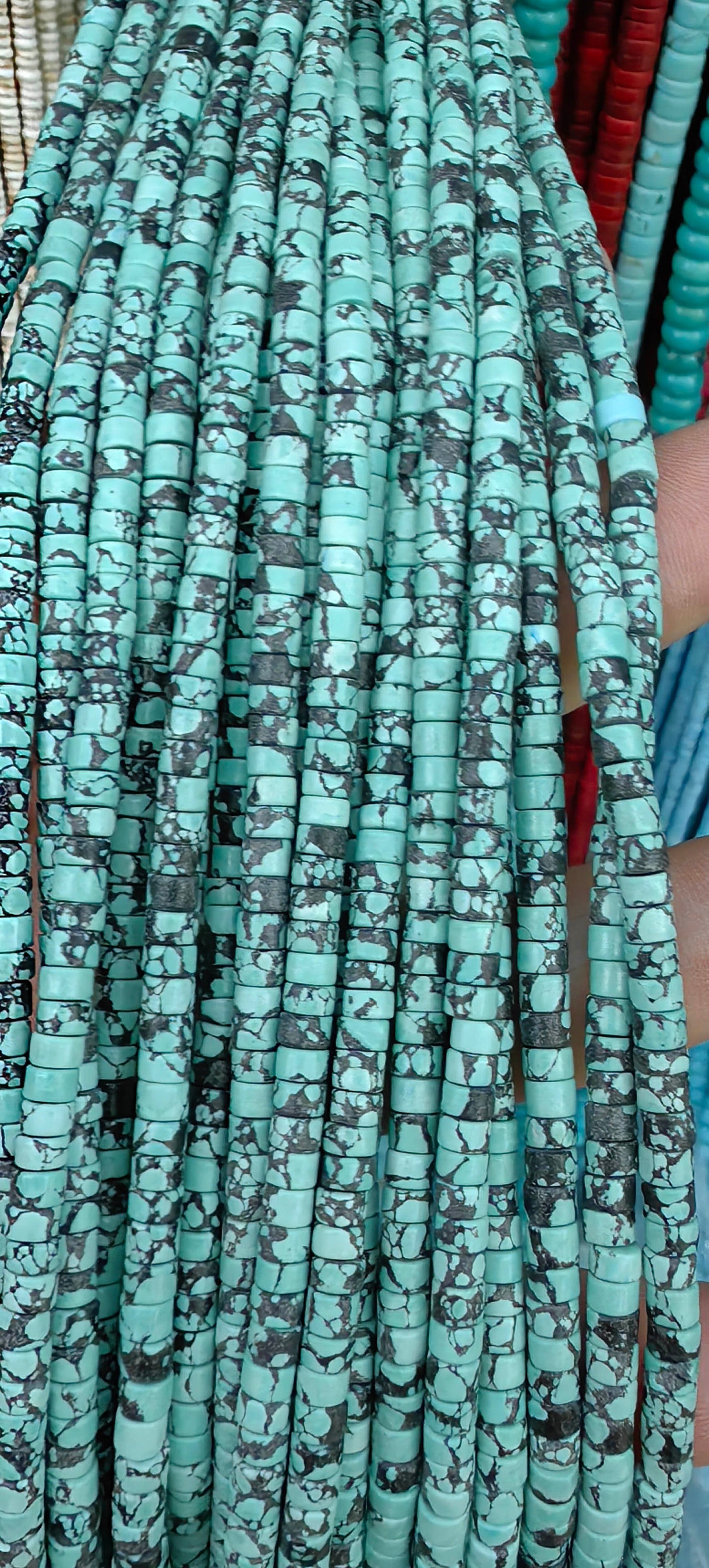 130pc Marble Matrix Turquoise Stone 4x3mm 16 Wheel Disc Seed,heishi ...