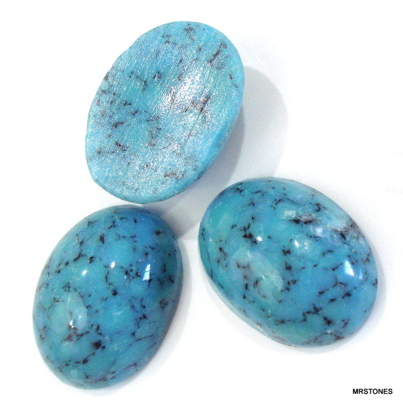 2 Pc Lot 20x15mm Turquoise Matrix Blue Black Oval Glass - Etsy
