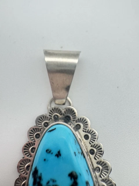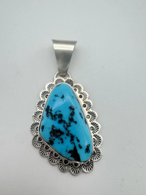 NAVAJO STERLING SILVER Turquoise Pendant Scalloped Bezel £55.85 ...