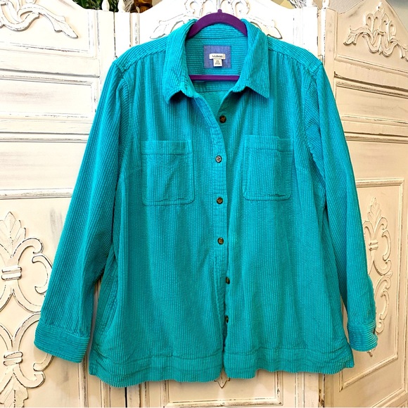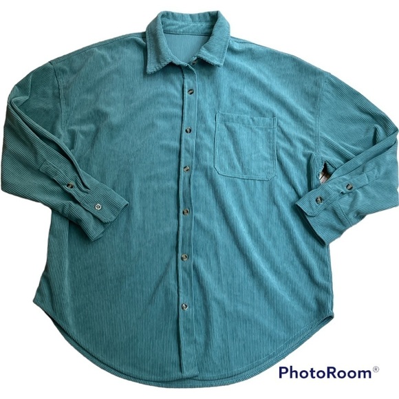 Tops | Turquoisesage Green Corduroy Shacket Size Large | Poshmark