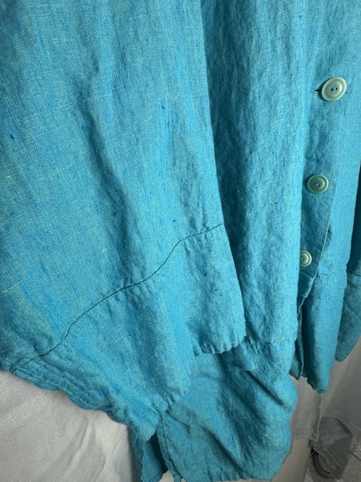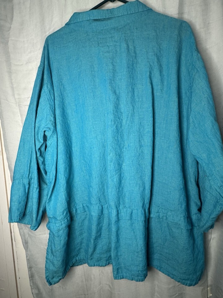 FLAX Linen Button Teal Turquoise Cyan Shacket Size Large Plus | eBay