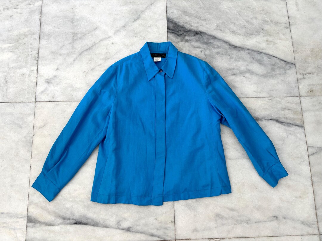 Vintage Harve Benard Shirt Jacket Shacket Linen Turquoise Blue Womens ...