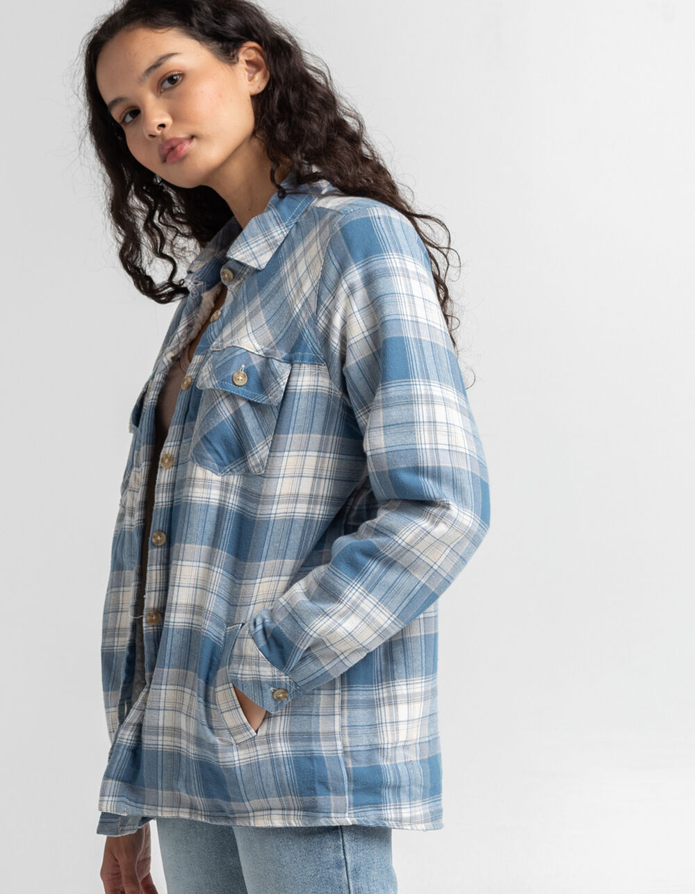 RSQ Womens Sherpa Lined Plaid Shacket - BLUE COMBO | Tillys