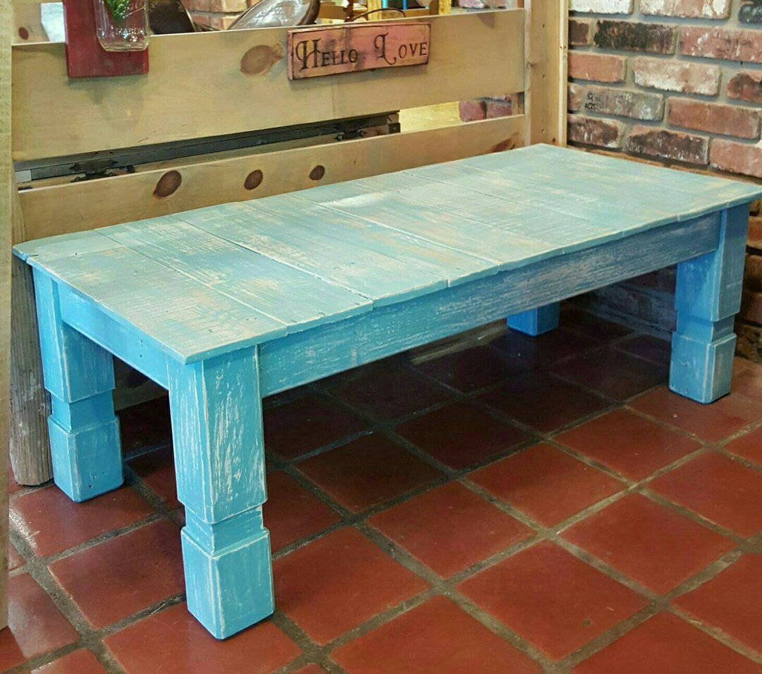 Rustic Turquoise Coffee Table | Distressed coffee table, Coffee table ...