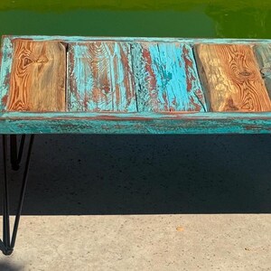 Turquoise Reclaimed Wood Console Table 30” Rustic Entry Accent Shelf ...