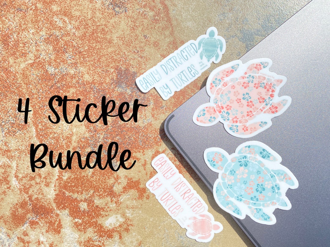 Four Turtle Sticker Bundle, Sticker Bundle, Turtle Sticker, Quote ...