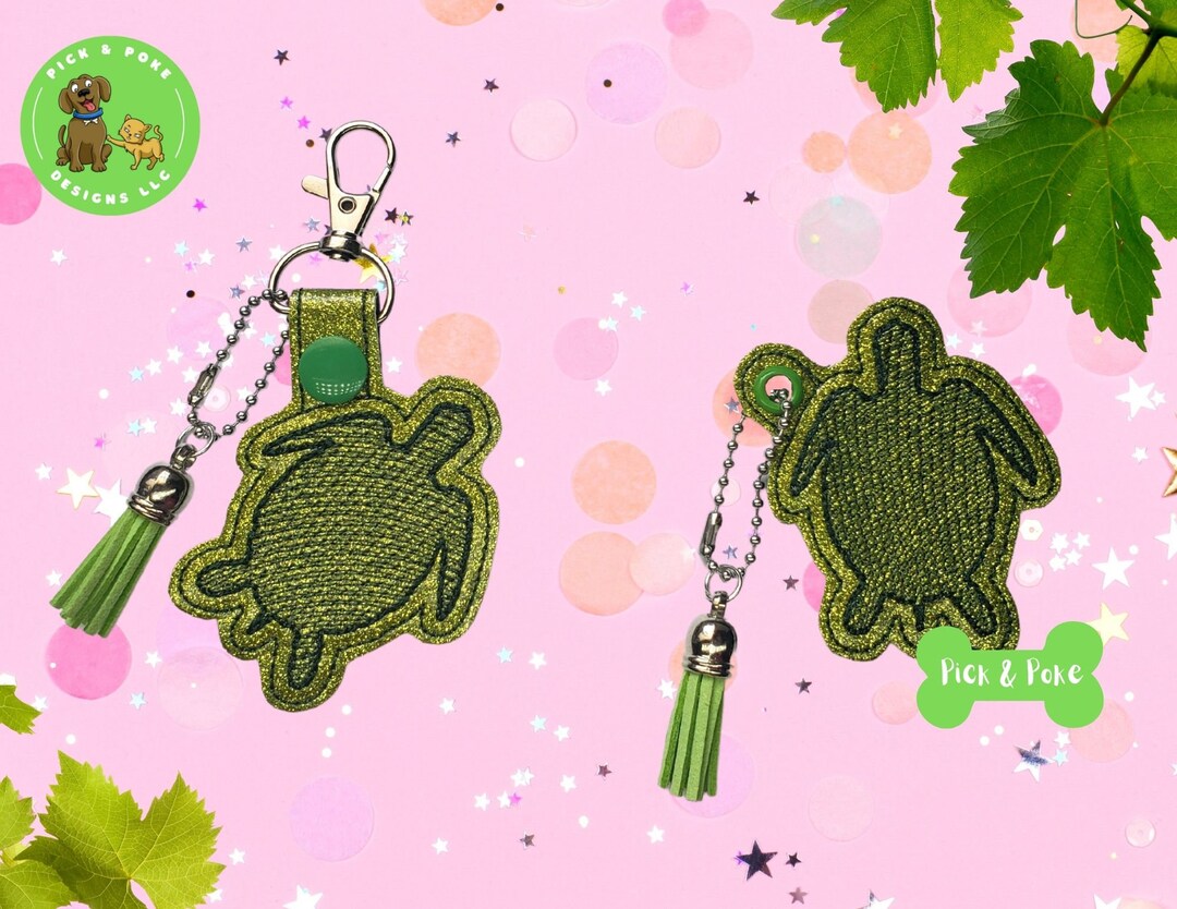 In The Hoop Cute Turtle Key Fob Keychain Felt Embroidery Design - The ...