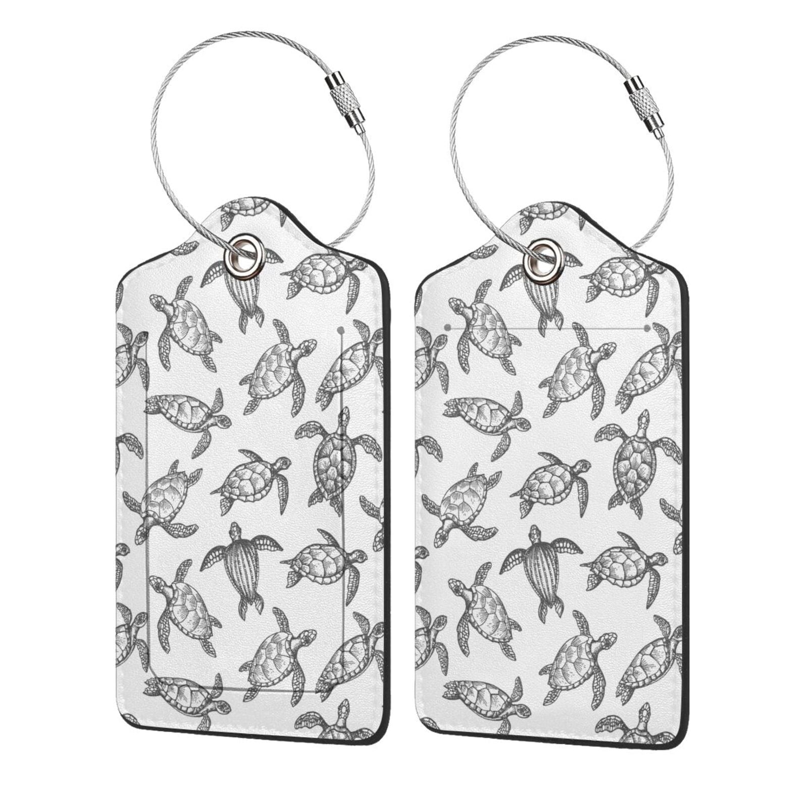 Turtle Seamless 2Pcs PU Leather Round Luggage Tags with Privacy Cover ...