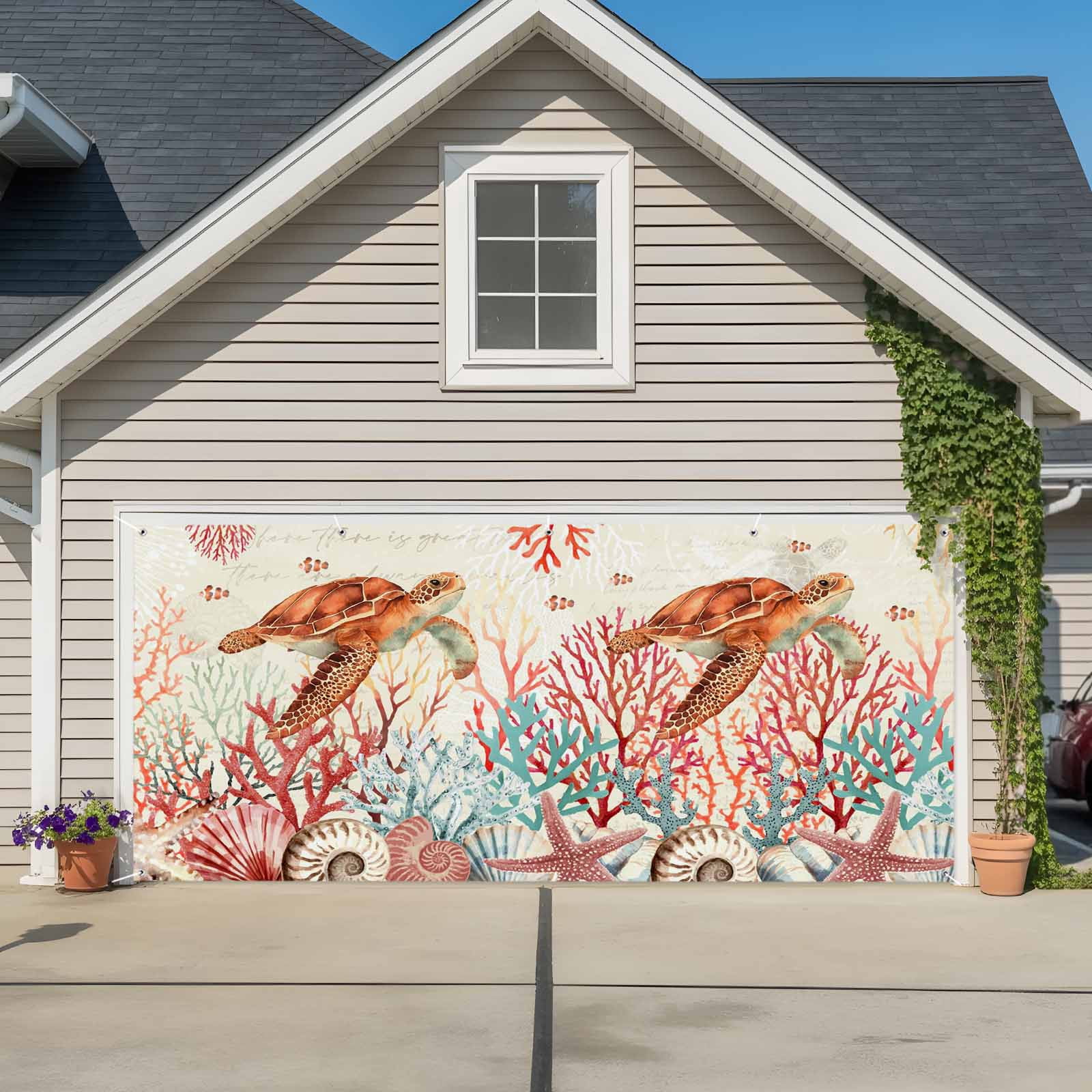 Brown Turtle Coastal Garage Door Cover Banner 7 x 16 FT,Summer Beach ...