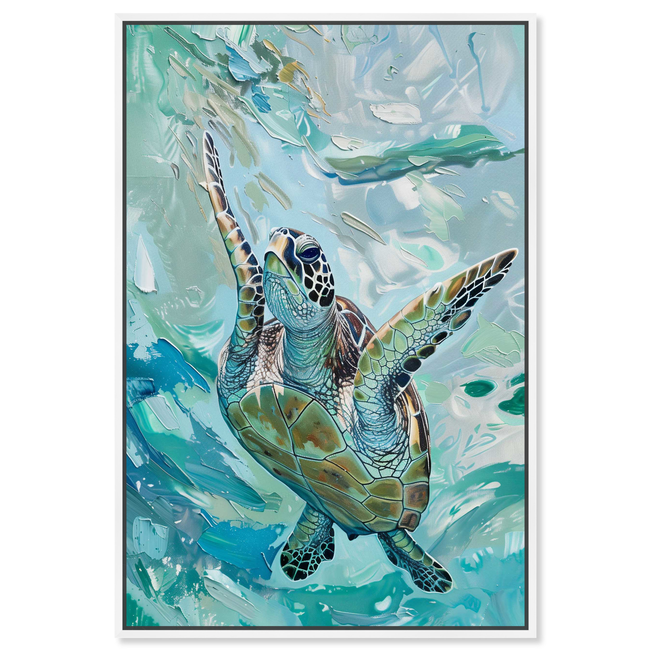 Art Remedy Serene Turtle Framed Colorful Coastal 1 Piece Canvas Wall ...