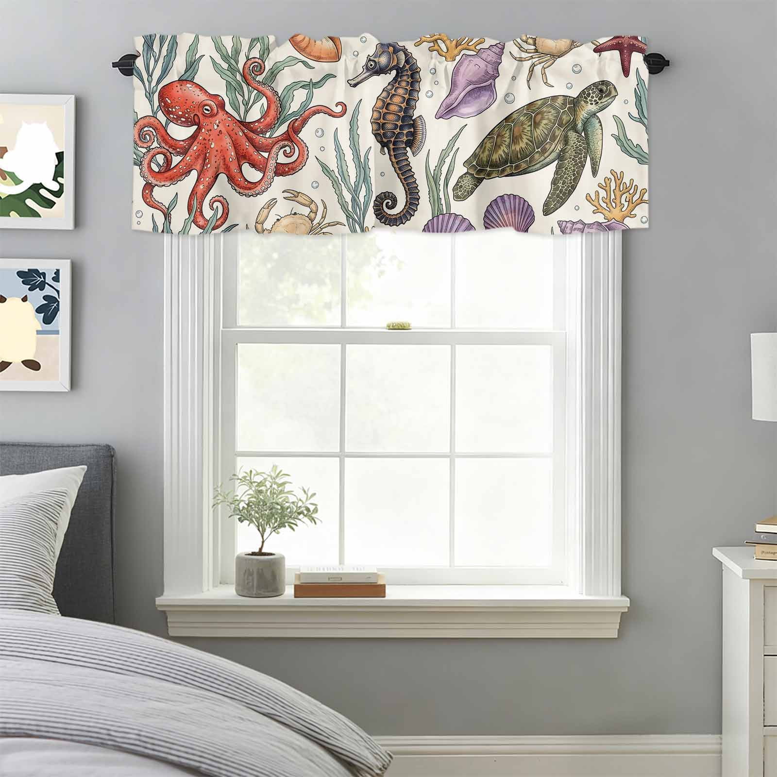 Curtain Valance for Windows, Sea Turtle Seahorse Crab Kitchen Valances ...