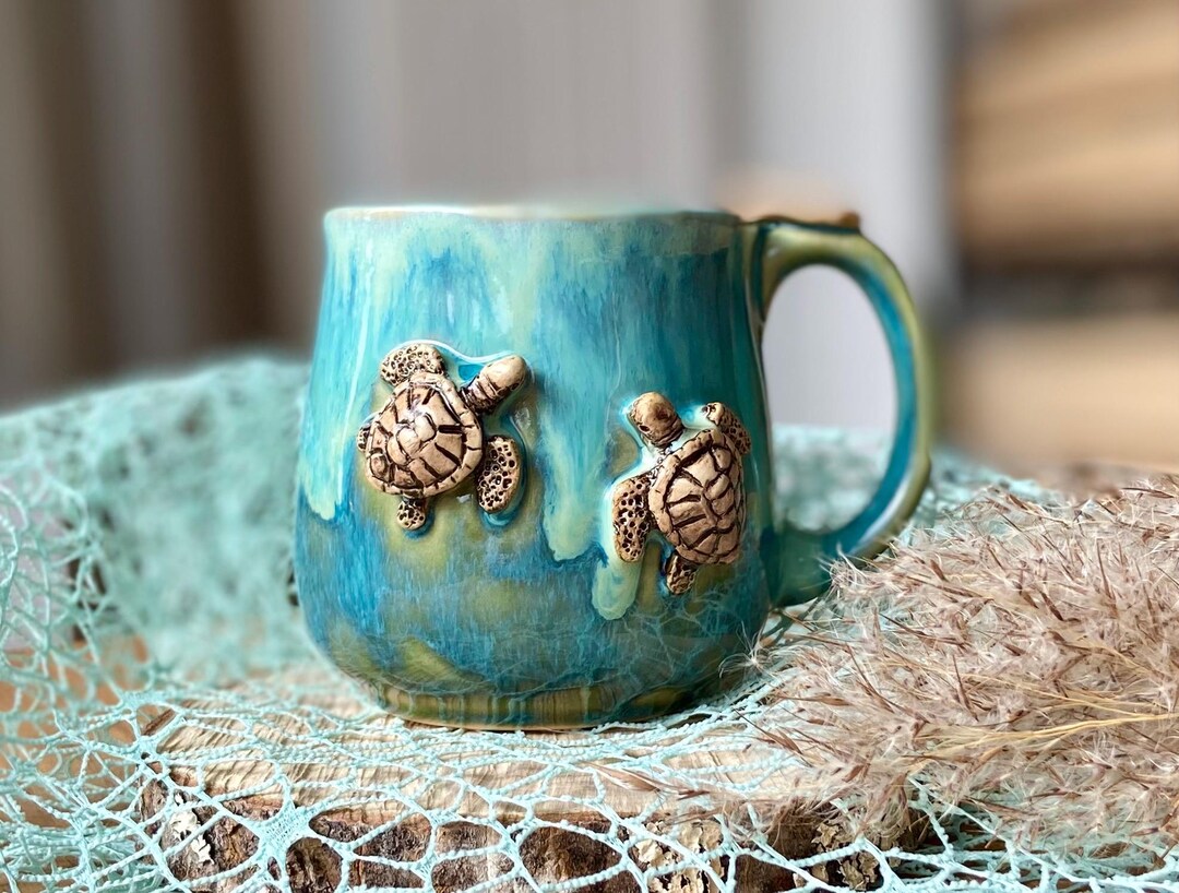 Handmade Sea Turtle Mug | Sea Turtle Tea Mug | Unique Turtle Coffee Cup ...