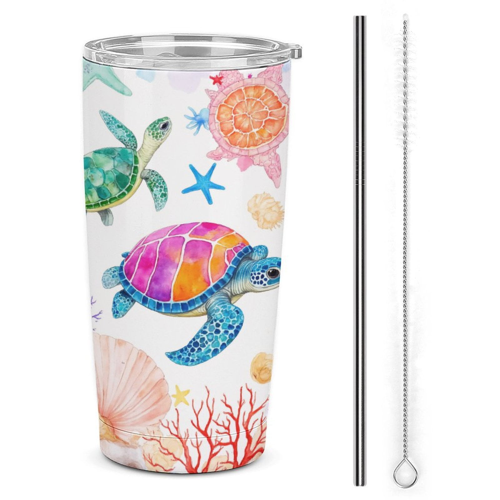Colorful Sea Turtles And Shells Tumbler Print 20oz Stainless Steel ...