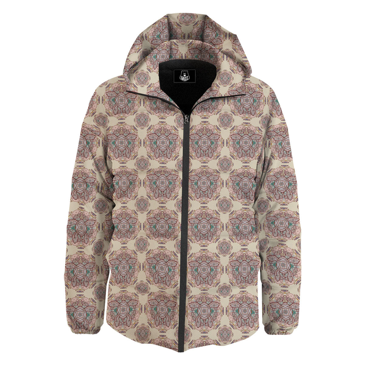 Beige Embroidered Full Sleeve Turtle Neck Woolen Bomber Jacket