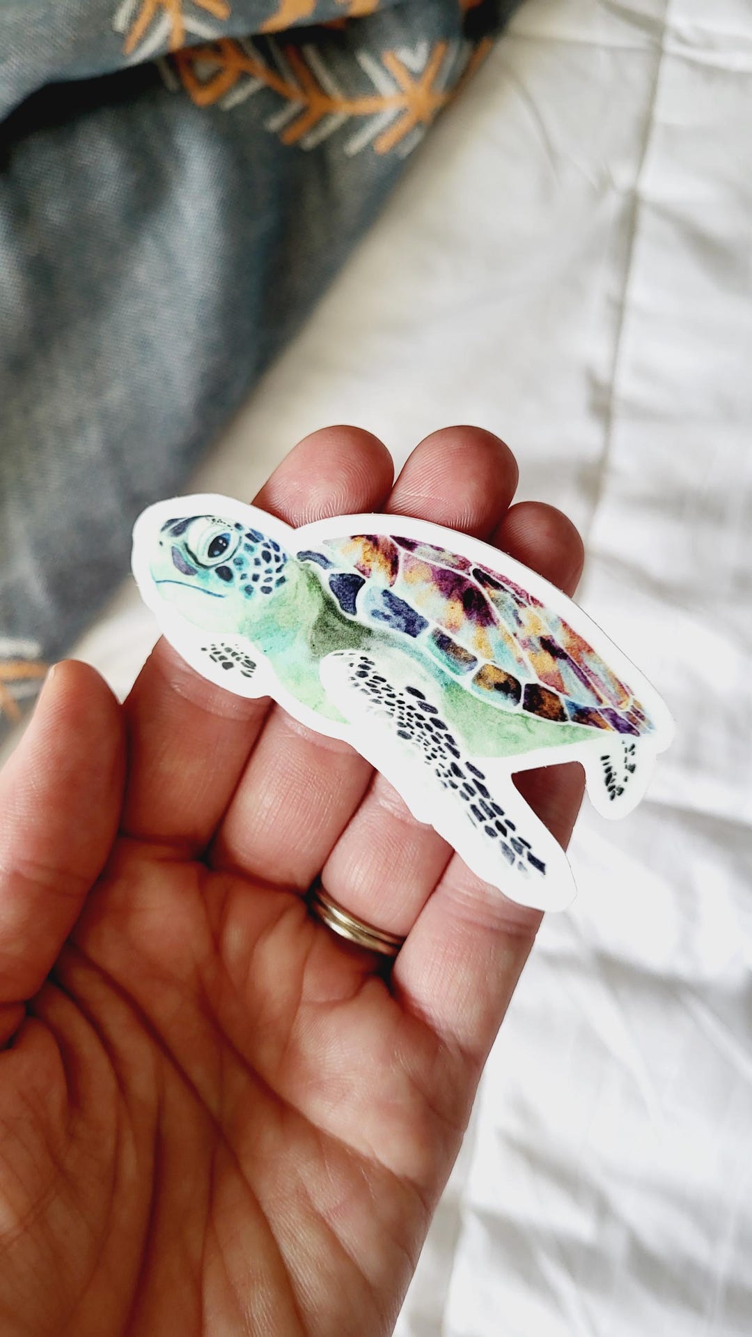 Watercolor Sea Turtle Sticker, Ocean Animal Waterproof Vinyl Sticker ...
