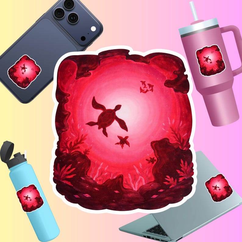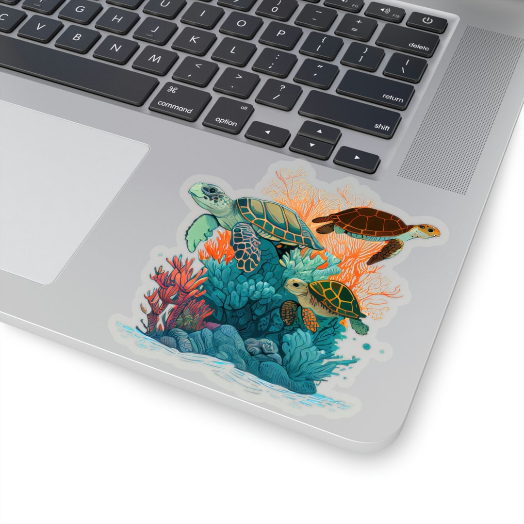 Waterproof Vinyl Sticker Vibrant Sea Turtles & Coral Sticker - Etsy