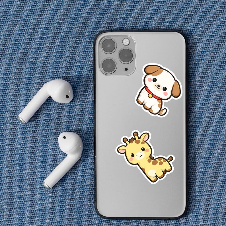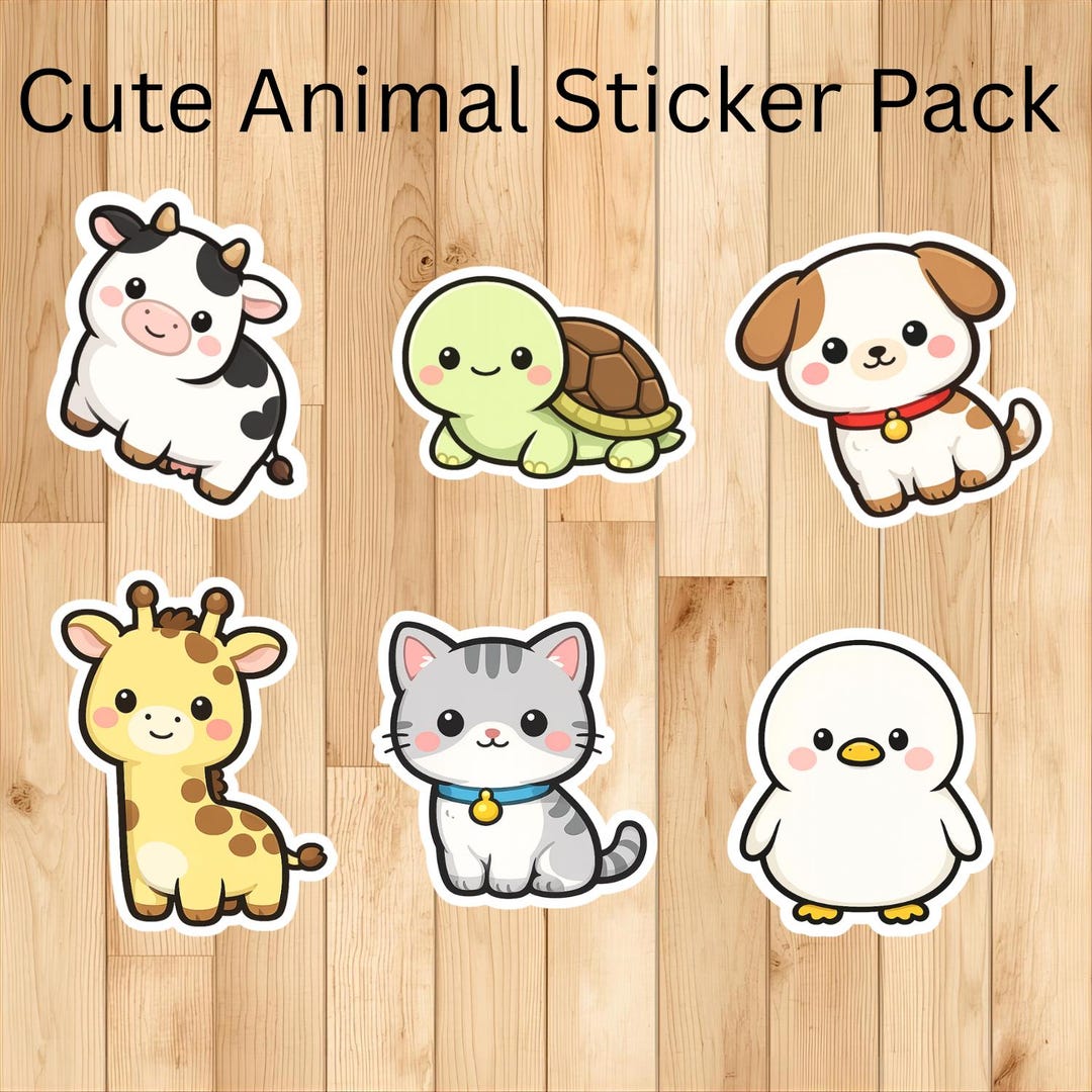 Kawaii Animal Sticker Pack | Giraffe, Dog, Cat, Cow, Turtle, Chick ...