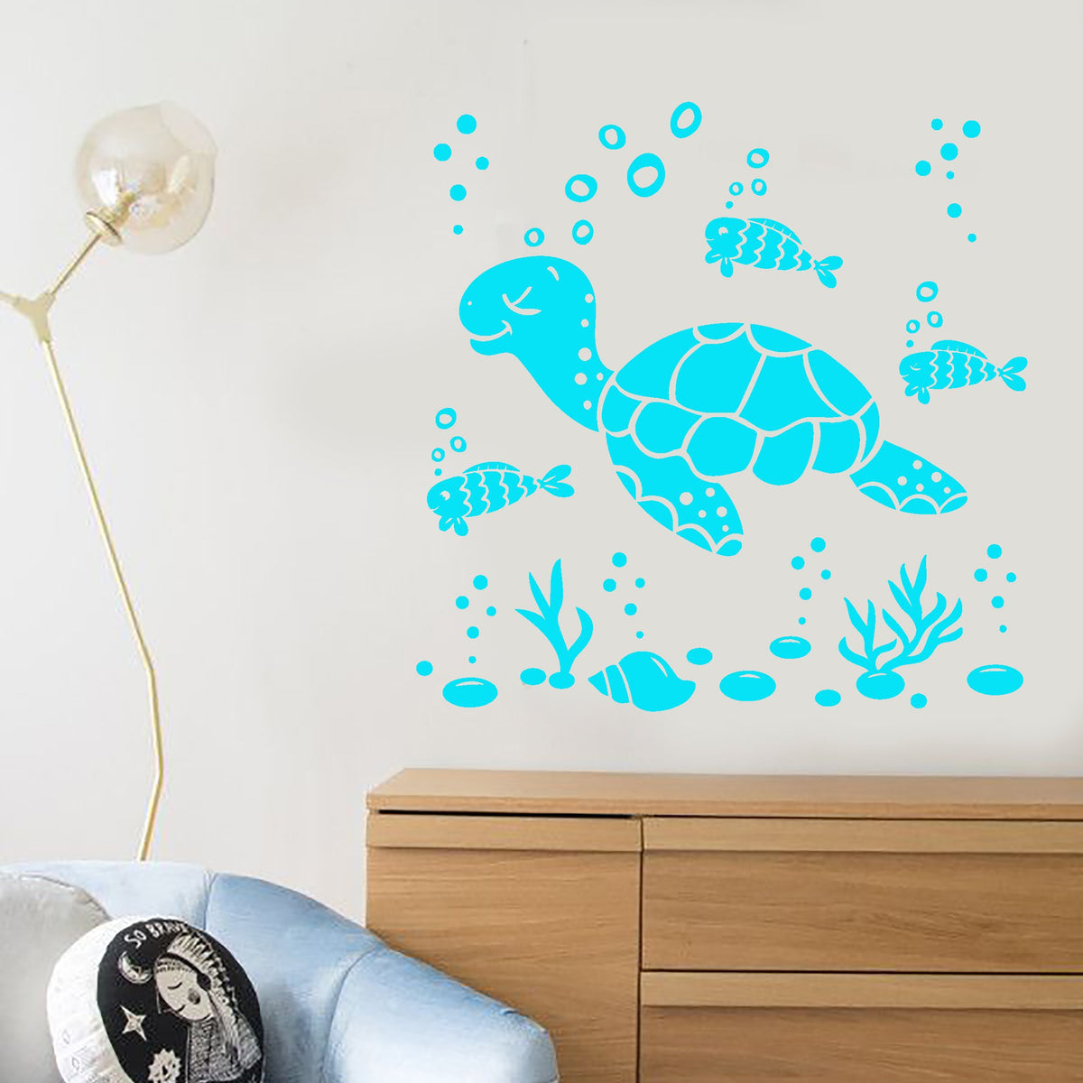 Vinyl Wall Decal Cartoon Sea Turtle Fish Ocean Style Water Bubbles Sti ...