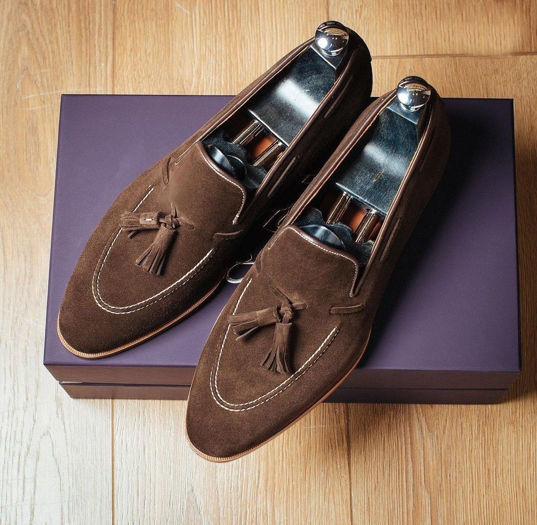 Men's Dark Brown Color Tussle Loafer Slip on Moccassin Party Wear Men's ...