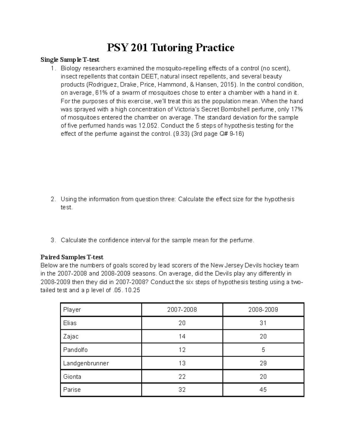 PSY 201 Tutoring Practice - PSY 201 Tutoring Practice Single Sample T ...