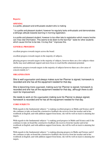 Form Tutor Report Statements by TomCollier - Teaching Resources - TES