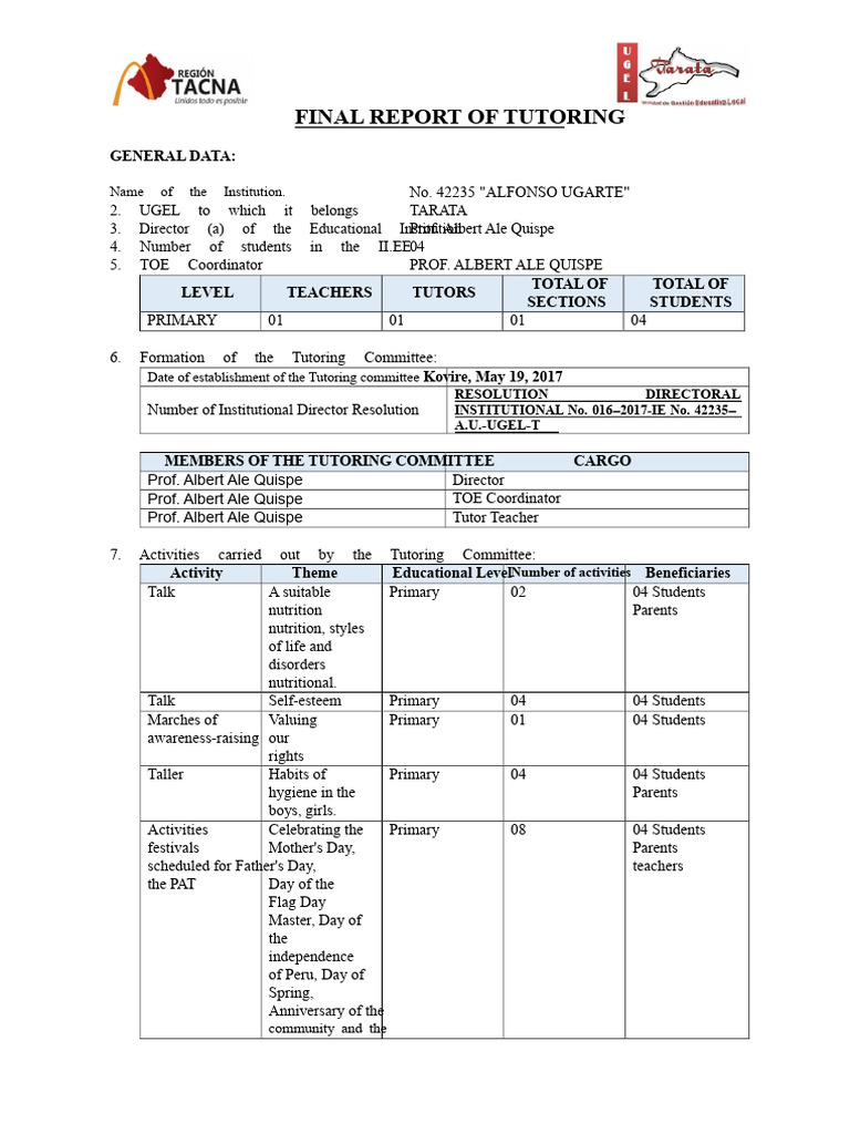 Fillable Online a u-tokyo ac Report of Tutor Activity Form (PDF Fax ...