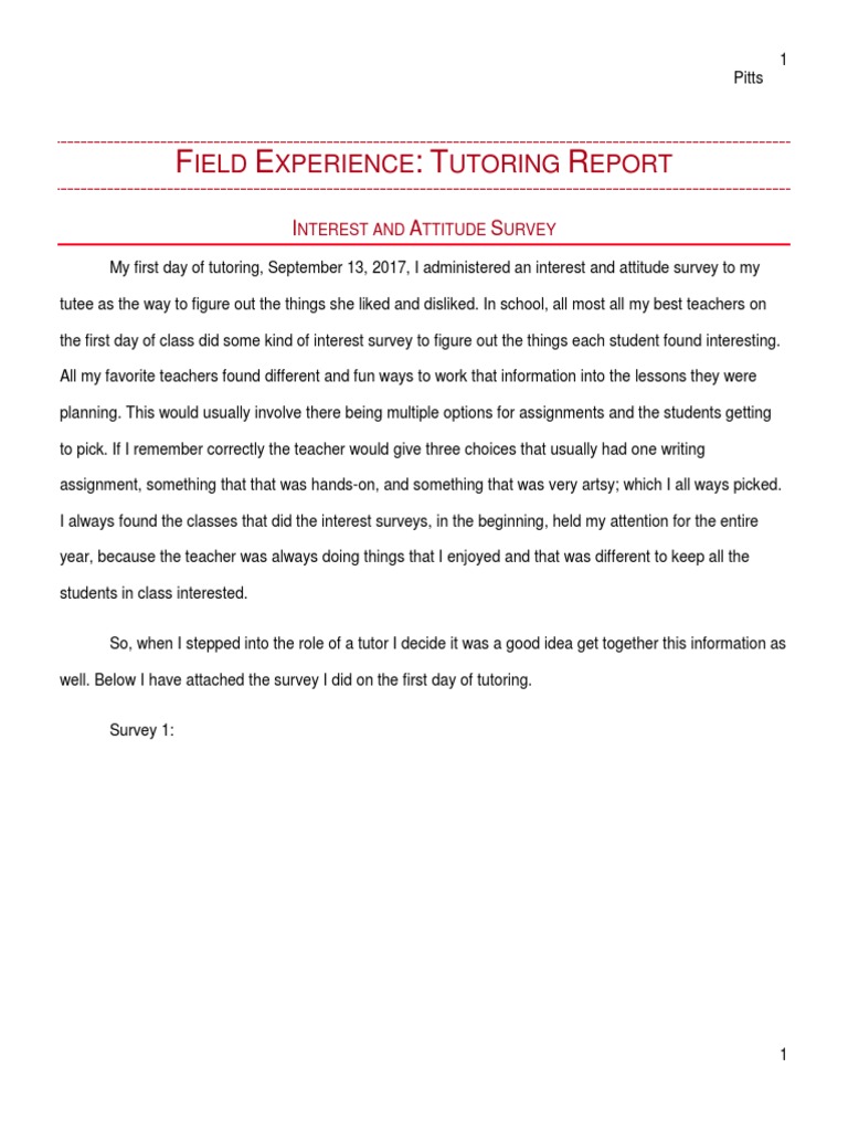 Tutoring Report at Annette Nelson blog
