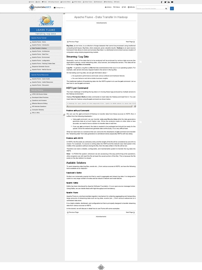 Apache Flume - Data Transfer in Hadoop - Tutorialspoint | PDF | Apache ...